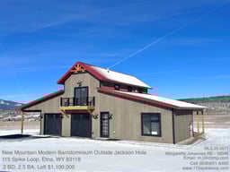 Brand-new chic barndominium on 4.77 acres in the coveted Nordic/Elk Flatts Subdivision. This mountain modern barndo is a sleek 2 bed, bonus loft, 2.5 bath home featuring heated concrete floors, a stunning custom staircase, modern finishes, and a dramatic two-story picture window with sweeping mountain and valley views. Watch the elk migrate through the front and back yard. Located minutes from the Salt River, National Forest access, and just 45 minutes to Jackson Holeāan ideal haven for snowmobilers and backcountry skiers with adjacent access. Roads, power, fiber, no HOA's, and simple CC&Rs make this the perfect modern Wyoming retreat. Sleek New Barndominium on 4.77 Acres in Elk Flatts - Modern Luxury Meets Wyoming Adventure